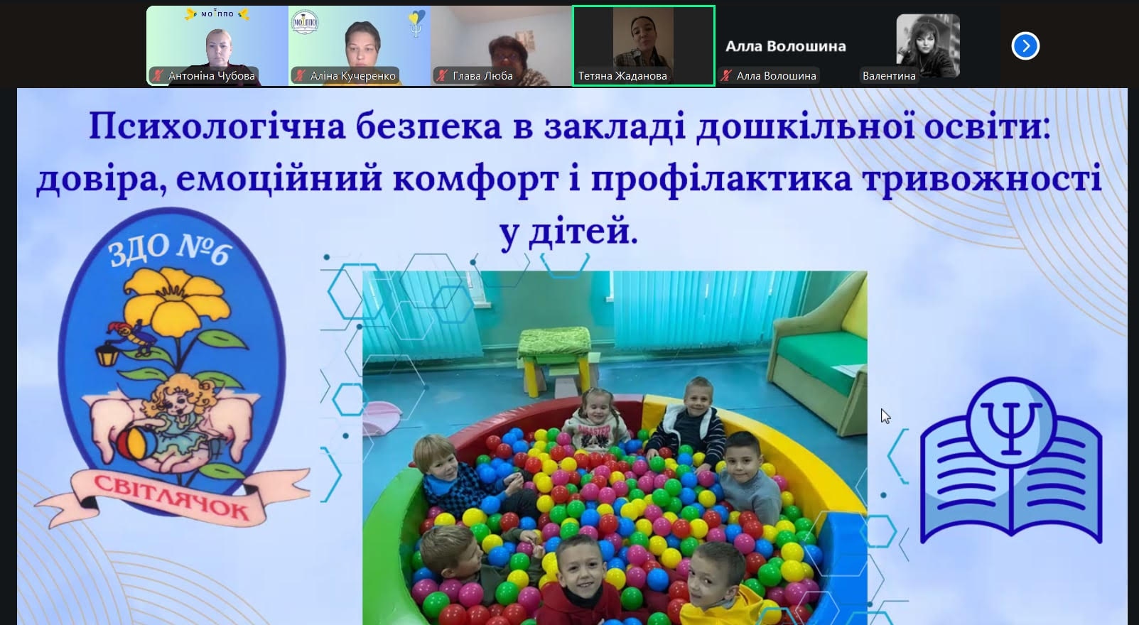 Тетяна Жаданова, практичний психолог Південноукраїнського ЗДО № 6 «Світлячок» Південноукраїнської міської ради, висвітлила підходи до формування атмосфери довіри, емоційного комфорту та профілактики дитячої тривожності.