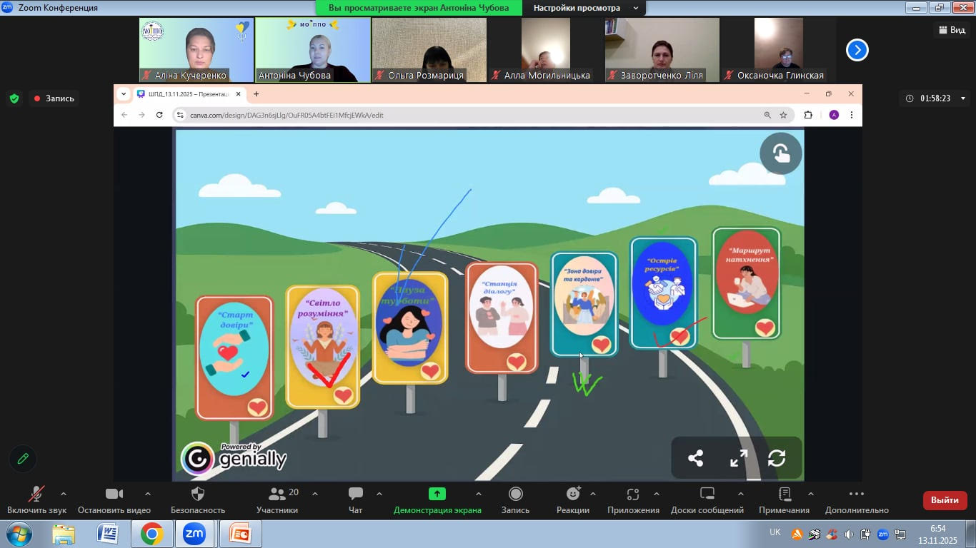 Модератори заходу, методисти Аліна Кучеренко й Антоніна Чубова запропонували учасникам низку практичних активностей для емоційного налаштування на роботу та професійного єднання в щоденних викликах і реаліях життя: вправа-ідентифікація «Який я сьогодні психолог / соціальний педагог?», «Обіймашки пальцями», активність «Емоційне дзеркало», вправа «Highway моїх ресурсів».
