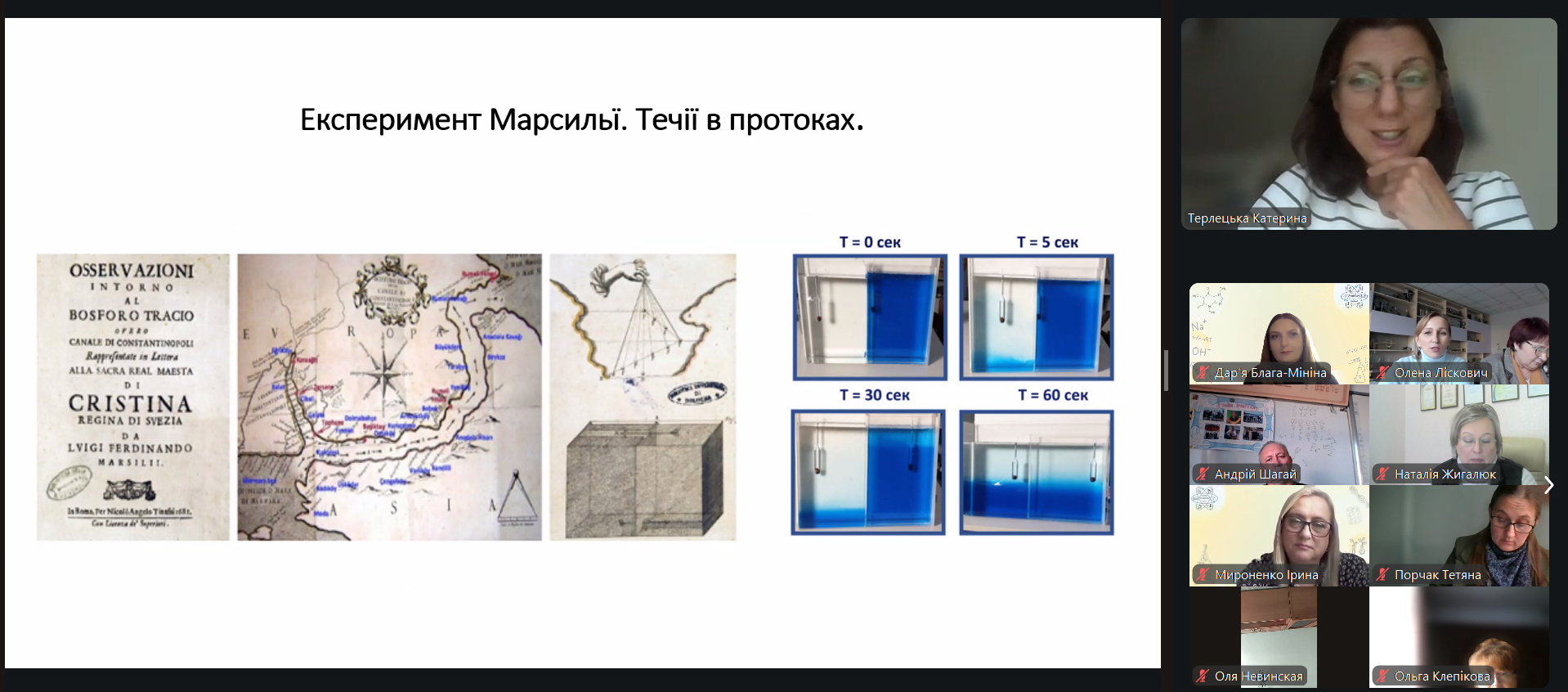 Катерина Терлецька, д. ф.-м. наук, завідувач лабораторії математичних наук Національного центру «Мала академія наук України», розповіла про дослідження внутрішніх хвиль, їх вплив на кліматичні системи та льодовики, представила навчальну програму «Зміни клімату», власні ідеї щодо моделювання кліматичних змін.
