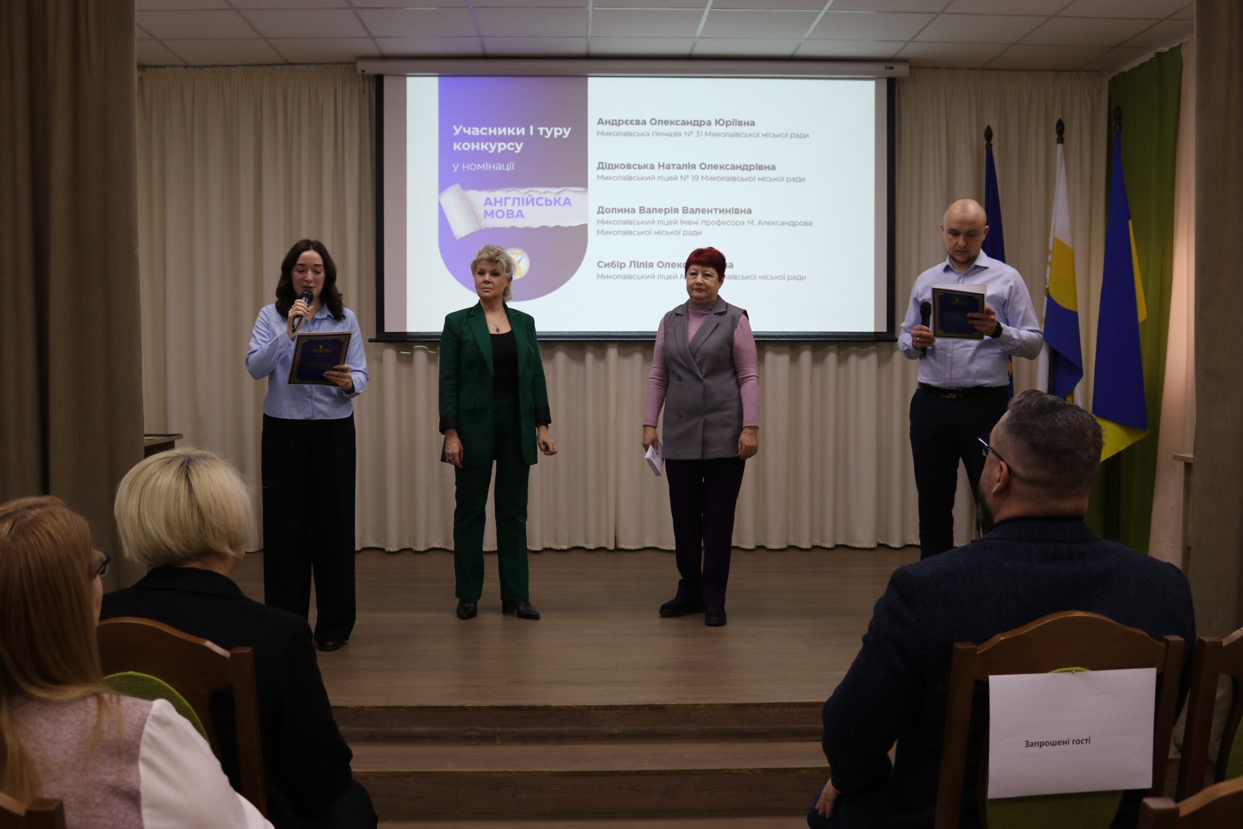 Зі словами щирої вдячності та підтримки до вчителів звернулися почесні гості: Денис Андрєєв, заступник голови Миколаївської обласної ради; Алла Веліховська, директор департаменту освіти і науки Миколаївської обласної військової адміністрації; Ольга Захар, в. о. директора Миколаївського обласного інституту післядипломної педагогічної освіти; Віра Оборонько, голова Миколаївської обласної організації профспілки працівників освіти і науки України; Тарас Кремінь, професор НУК імені адмірала Макарова, народний депутат України VIII скликання; Олена Гогоренко, декан філологічного факультету НУК імені адмірала Макарова.