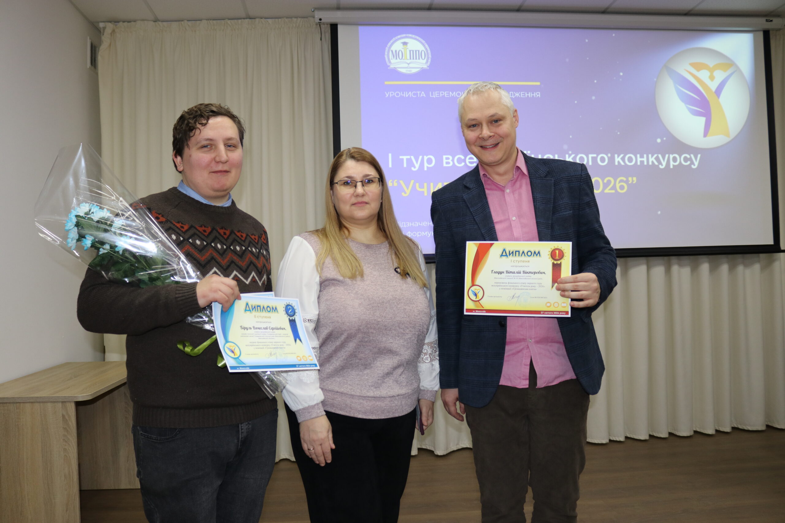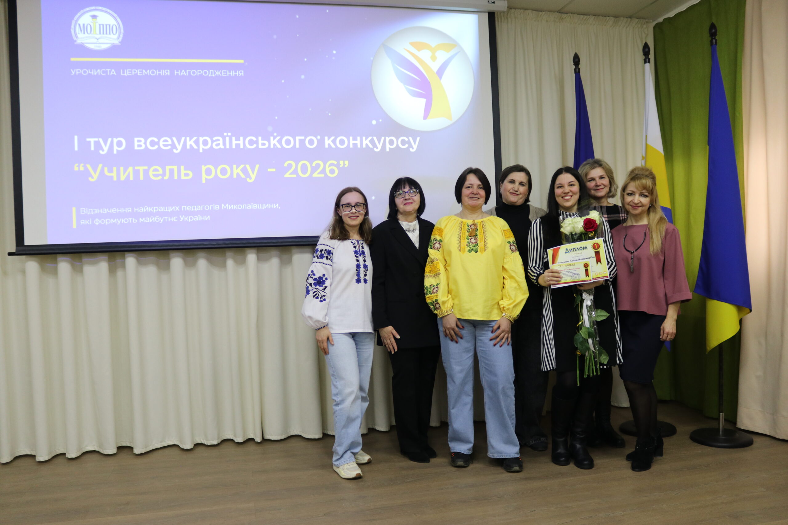27 лютого 2026 року в Миколаївському обласному інституті післядипломної педагогічної освіти відбулася урочиста церемонія нагородження учасників, лауреатів і переможців першого туру всеукраїнського конкурсу «Учитель року – 2026».